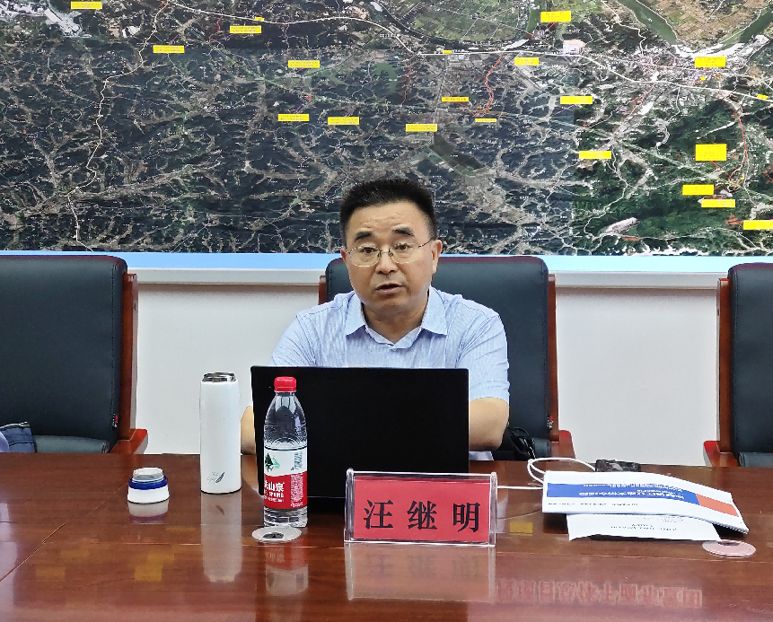 在項目部會議室觀看項目全線航拍視頻后,汪繼明聽取了赤壁東項目負責人王明關于項目安全生產(chǎn)、施工進度、審計整改、黨建工作等方面的情況匯報,并同與會人員進行深入交流,剖析當前項目在建設推進過程中存在的問題,并就下一步項目建設工作提出指導意見。