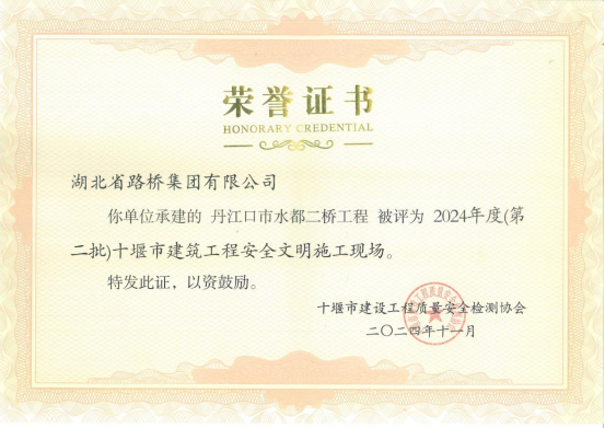 近日,十堰市建設質(zhì)量安全檢測協(xié)會公布2024年度(第二批)“十堰市建筑結(jié)構優(yōu)質(zhì)工程”和“建筑工程安全文明施工現(xiàn)場”獲獎名單,湖北路橋承建的丹江口市水都二橋工程榮登榜單,喜獲“質(zhì)安”雙獎。